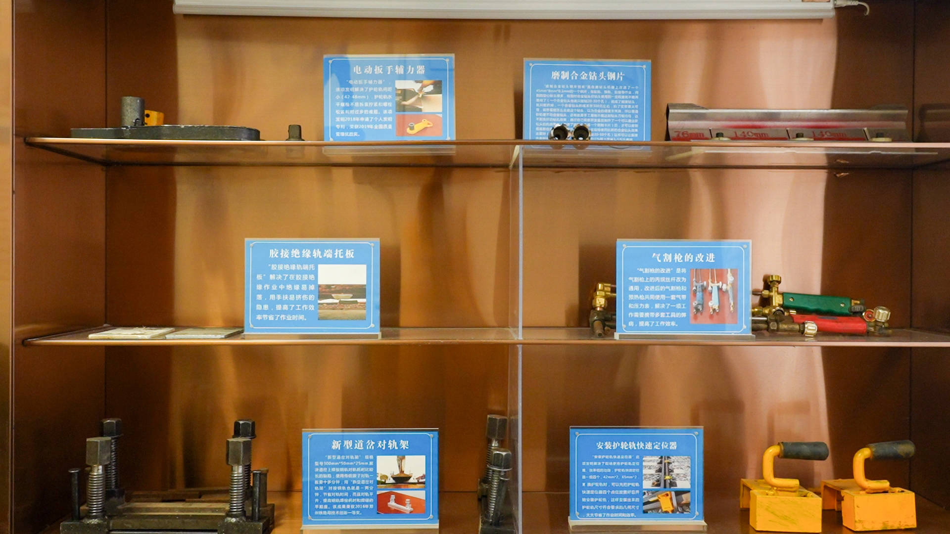 图为李会杰劳模创新工作室中陈列的改进模型。新华社发(牛朕摄)在占地约60平方米的“李会杰劳模创新工作室”,陈列着30项技术改进模型:防轨底肥边的U型方铁将打磨作业精度提升至0.1毫米;线下长钢轨拉伸器可减少现场三人的作业量;内燃钻孔机改进散热结构后故障率下降65%……“线路工的工作看似简单,却直接关乎火车运行安全,工具的创新不仅提升作业效率,更为推动铁路高质量发展贡献一份力。”李会杰说。